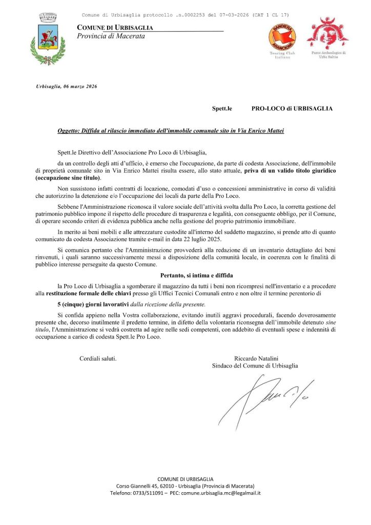 Abbiamo ricevuto e letto con profonda preoccupazione la lettera inviata oggi dal Sindaco alla Pro Loco di Urbisaglia.